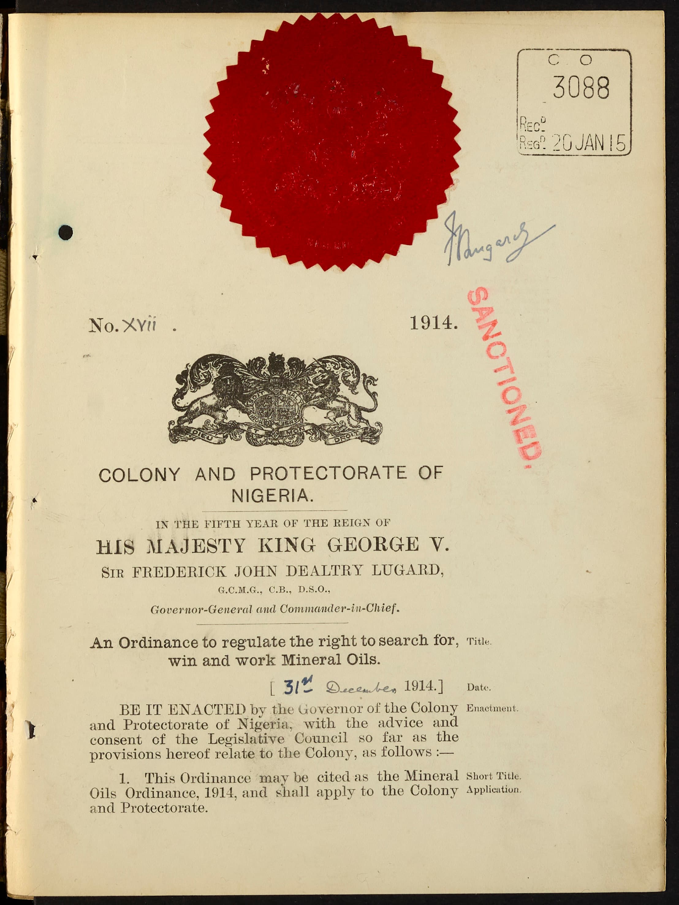 Mineral Oils Ordinance 1914