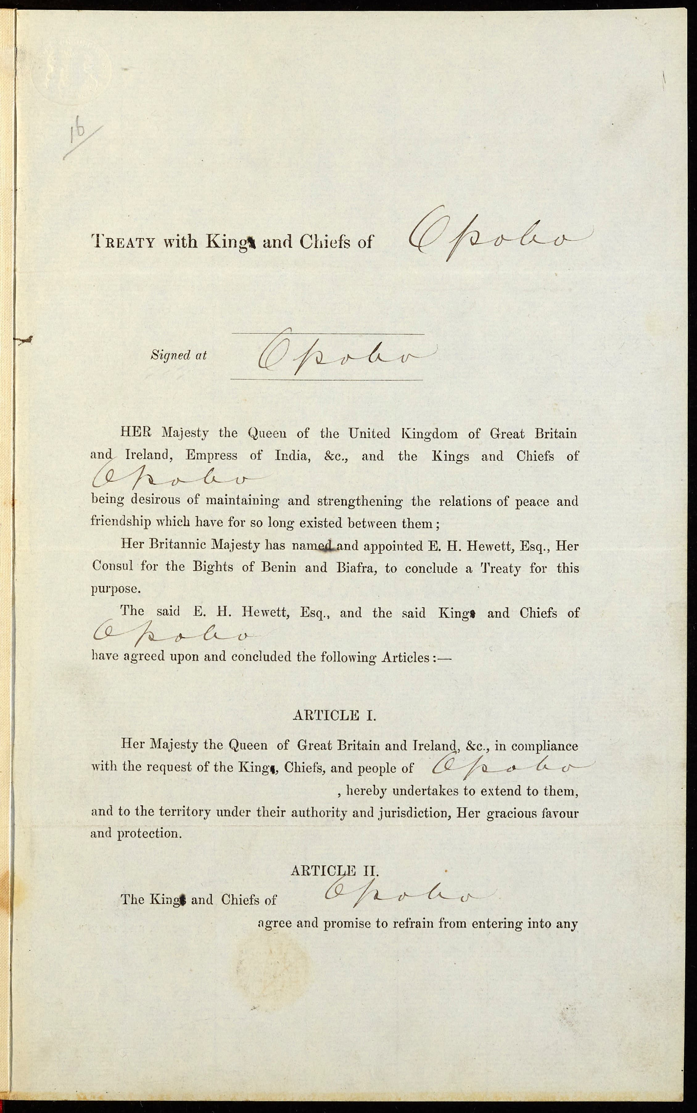 Treaties that were termed treaties of ‘protection’ legitimized the juridical authority of Empire (Dike 1956). The Opobo Treaty follows the template laid down in previous treaties signed between Britain and various kings, queens and chiefs of the Niger Delta. These Treaties reflected the intensified competition between Britain and other European states in the run-up to the infamous 1884-1885 Berlin Conference. Where they had the temerity to divide Africa amongst themselves, not once alluding to the violent wars, massacres and subjugation that were background to their powerful position (Falola 2009). Their self-ascription of ‘original ownership’ continues to mark the postcolonial state through the normalisation of such differentiation markers as anglophone and francophone Africa.